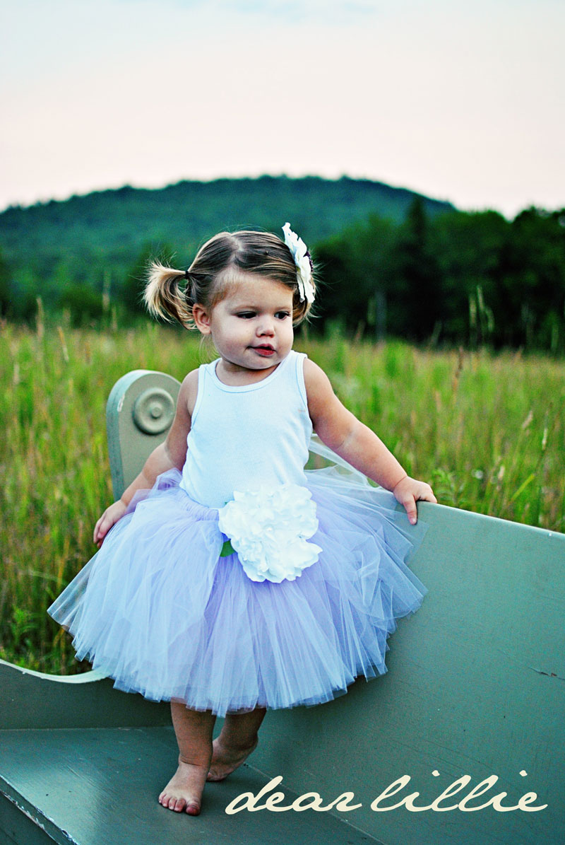 We have been having so much fun up here. Lillie is in heaven. She has been having a ball playing with her aunts and uncles and just getting to run around in the great outdoors. Last night we took her out to shoot some photos of some of the tutus including the two options for this giveaway. I like the shots of the Lillabel Tutu but am not happy at all with how the Wisteria ones came out. Oh well. We will try again if the weather ever cools down a bit.